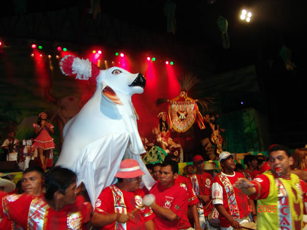 O bumbá vermelho e branco cumpre a tradição do fundador Lindolfo Monteverde e convida os torcedores para desfilarem pelas ruas cantando as toadas antológicas.